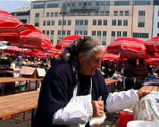To sam ja Ana Kralj, iz Orešja Prije sam išla na Dolac, od svoje dvadesete godine, a sad imam 71. Kak je naša Hrvatska postala, premjestila sam se na Kvatrić. Na Kvatriću mi je bliže autobus, i nema štengi, pa mi je to puno lakše. Svaki tjedan jedanput, četvrtkom, nosim sir i vrhnje po kućama, u centar grada. To su mi sve stare mušterije, kod kojih donosim 35 godina. Poslije, kad obiđem kuće, još dođem malo na Kvatrić. Nedjeljom obavezno dolazim na Kvatrić. Radi zime, puno mi je lakše da nosim po kućama, a osim toga, sigurna sam da bum prodala. Imam tri kravice i jednu junicu. ( zapisano na izložbi 12.12.2003.)